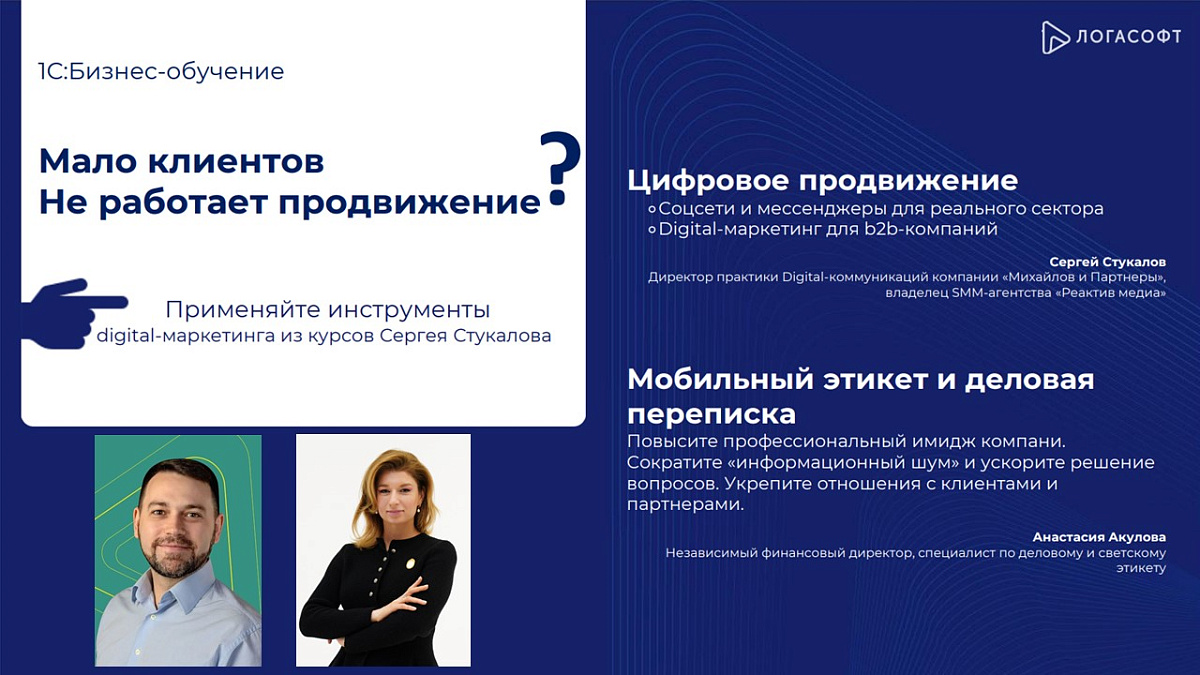 Представляем образовательную платформу 1С:Бизнес-Обучение — это десятки актуальных курсов, которые регулярно обновляются, и сотни полезных материалов для профессионального и личного роста.