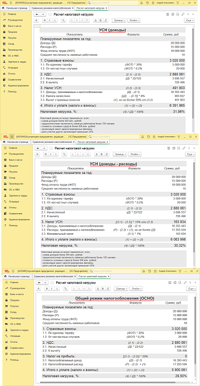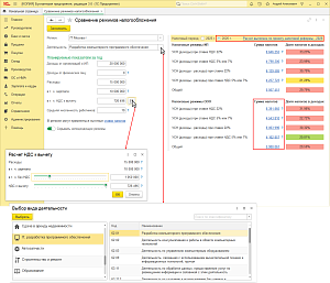 С версии 3.0.184.26 можно рассчитать налоговую нагрузку и выбрать подходящий налоговый режим на 2026 год по проекту налоговой реформы с учетом: